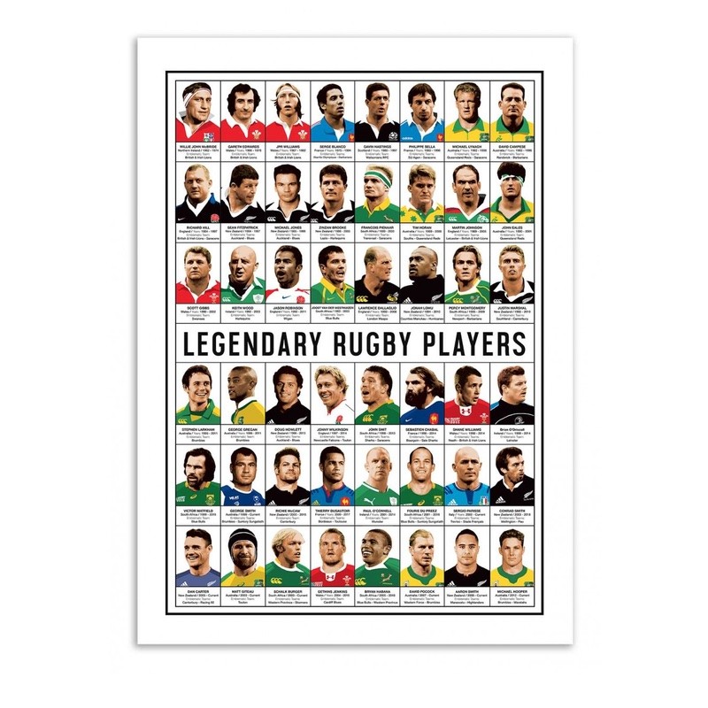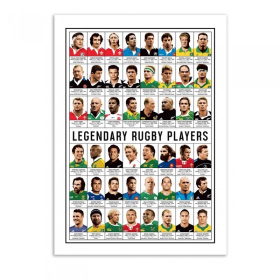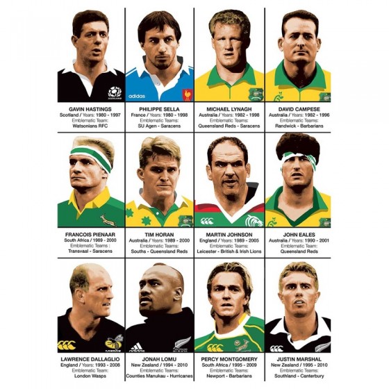 Sur une seule affiche, retrouvez 80 portraits de rugbymans qui ont marqué l'Histoire du sport des années 50 à nos jours! Affiche au format 50x70cm imprimée sur papier couché mat 200g en haute définition. Livré dans un tube sous protection et sans cadre.