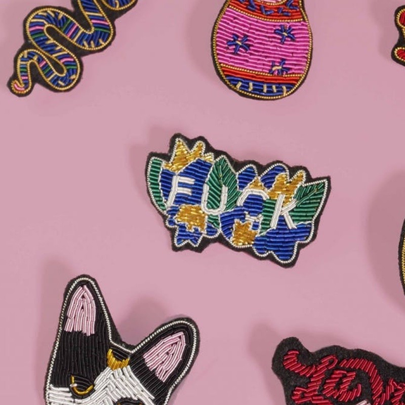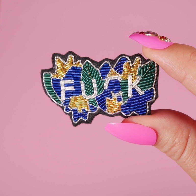 - Broche motif expression "Fuck" fleurie