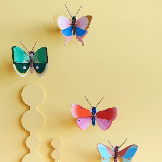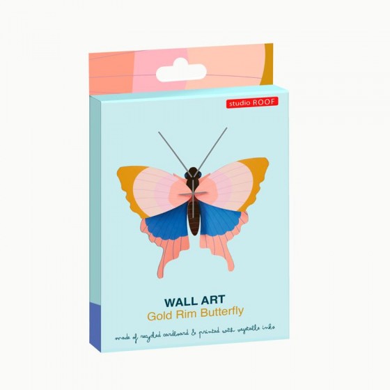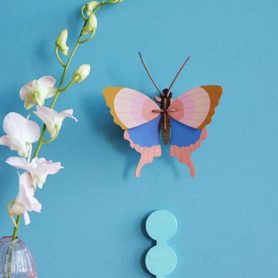 Papillon 3D à construire soi-même de STUDIO ROOF, sans colle, facile et rapide, avec une anse prévue pour accrochage mural.