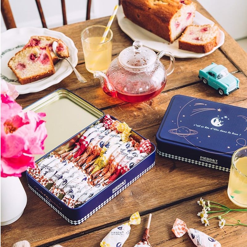 À offrir ou à s'offrir, la boîte métal Pierrot Gourmand fera aussi bien le bonheur des amoureux du caramel que des adeptes du fruit.