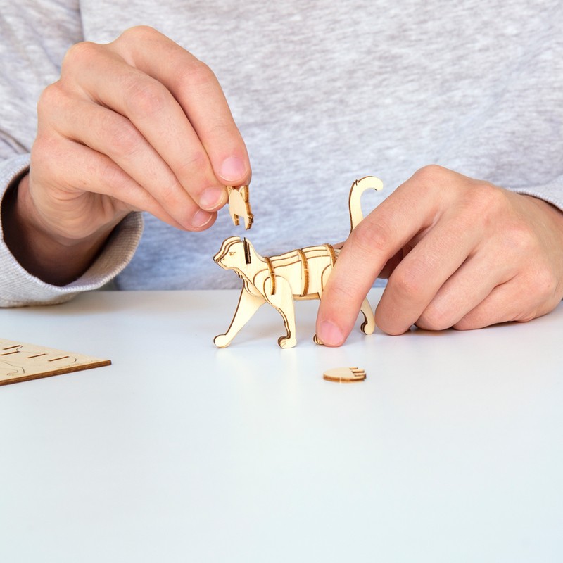 Kit à construire en bois. Planche de bois prédécoupée avec pièces à assembler sans colle pour construire votre animal préféré. Un cadeau coresponsable, ludique et relaxant.