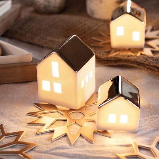Mini maison LED photophore Rader en porcelaine avec lumière intégré