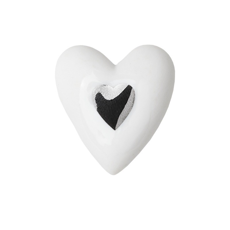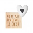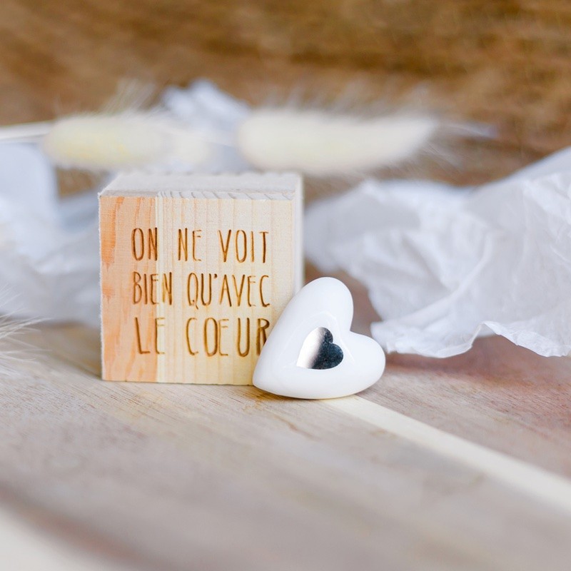 Coeur porte bonheur en porcelaine avec sa boite en bois.